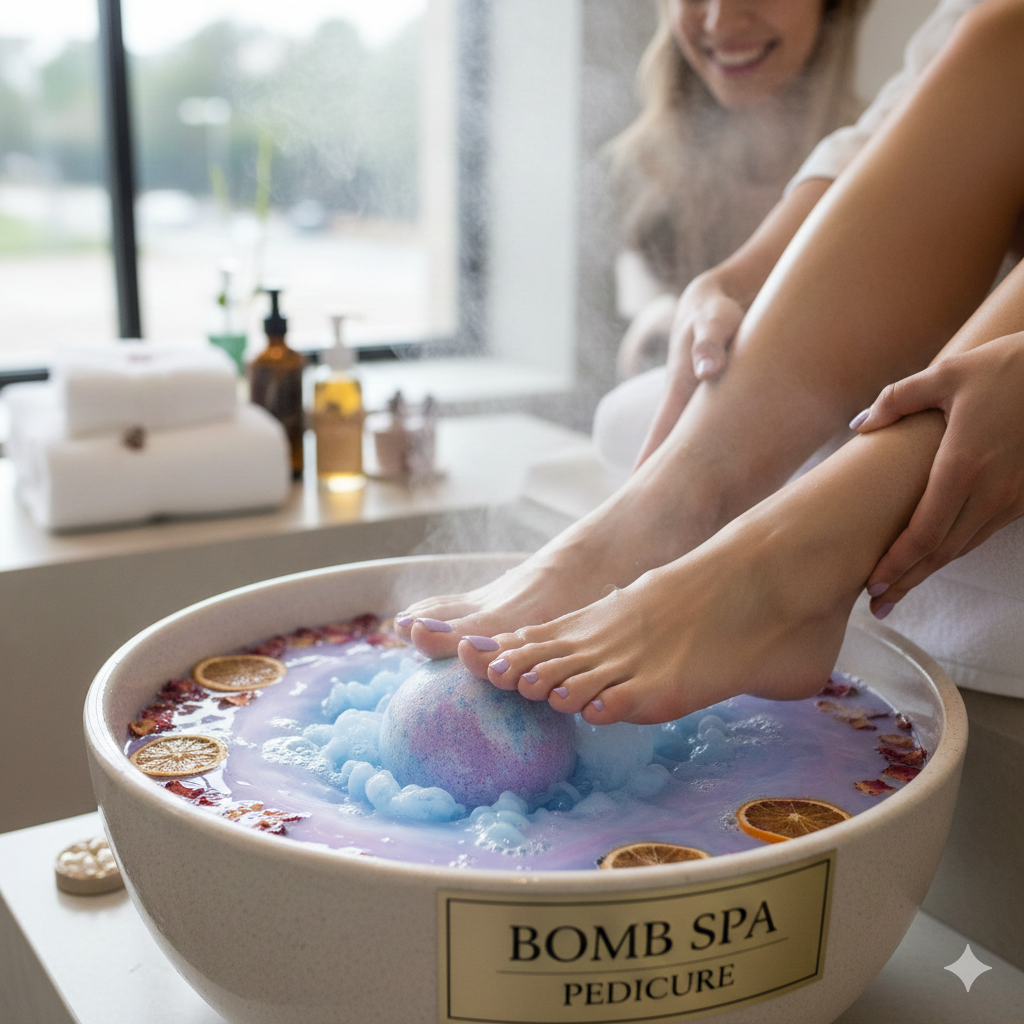 We use liners for our pedicures. All pedicures are spa quality and begin with a soak. Our refreshing whirlpool foot bath uses products specified for your chosen treatment. Nails are shaped, cuticles trimmed, and your feet and legs are massaged for further relaxation. Finally, your choice of nail polish is applied.